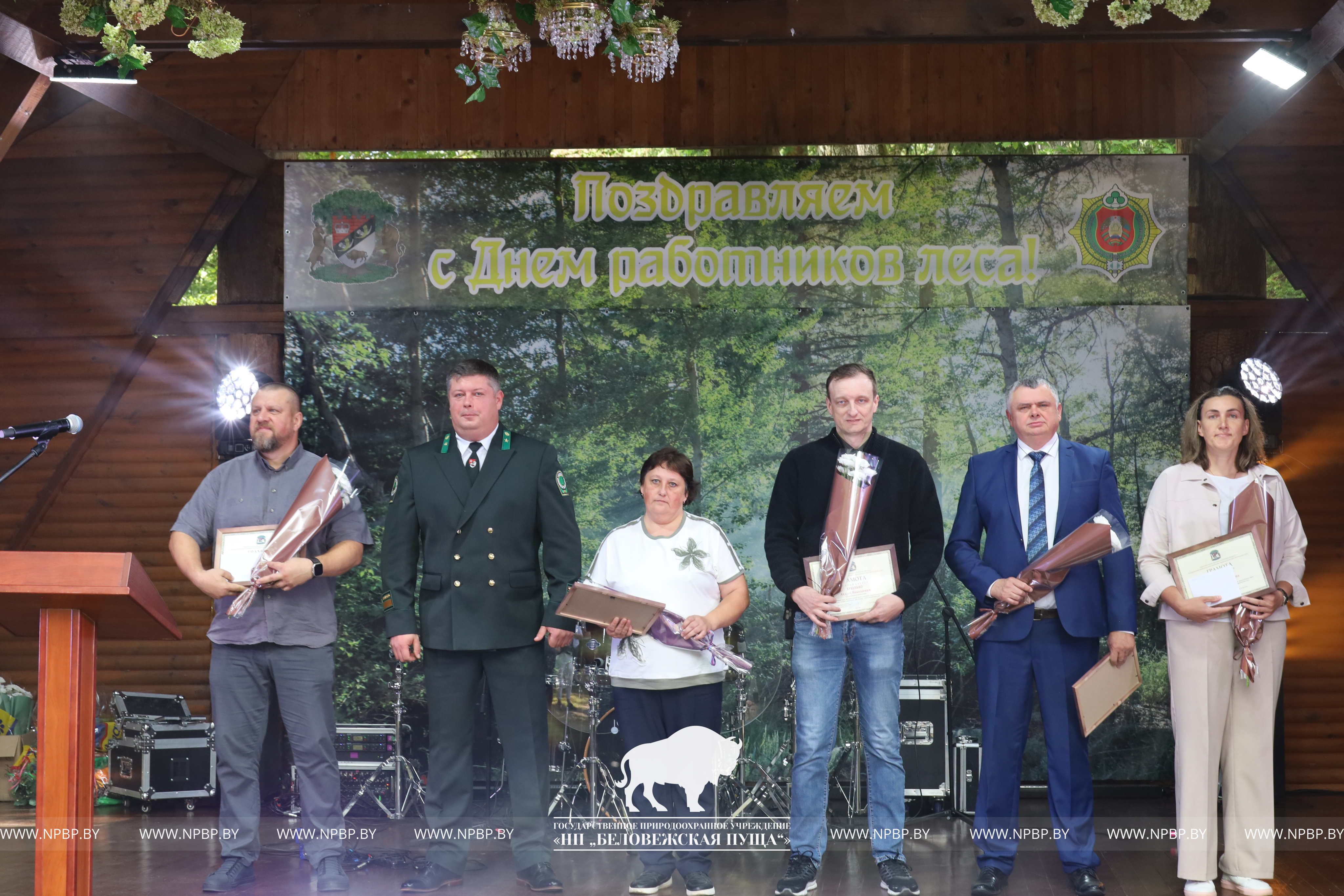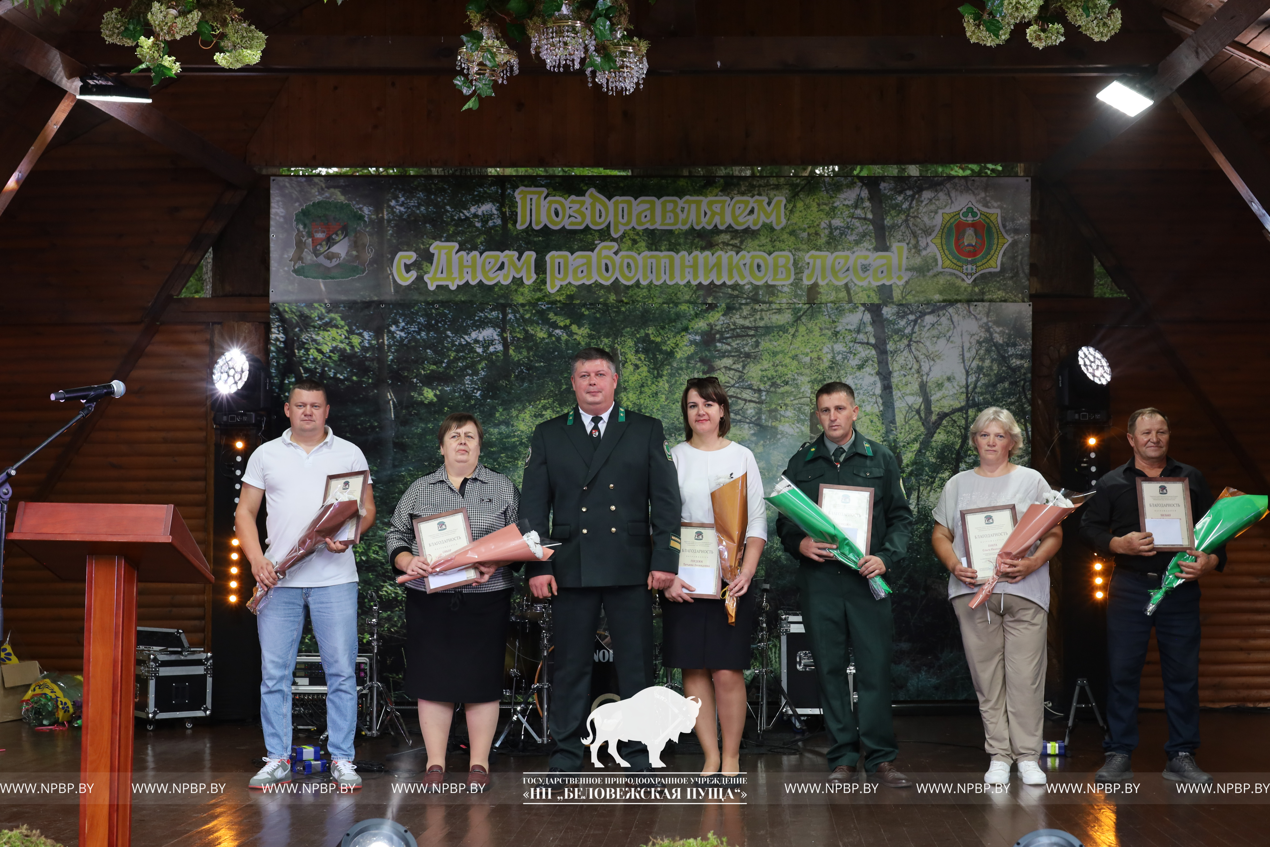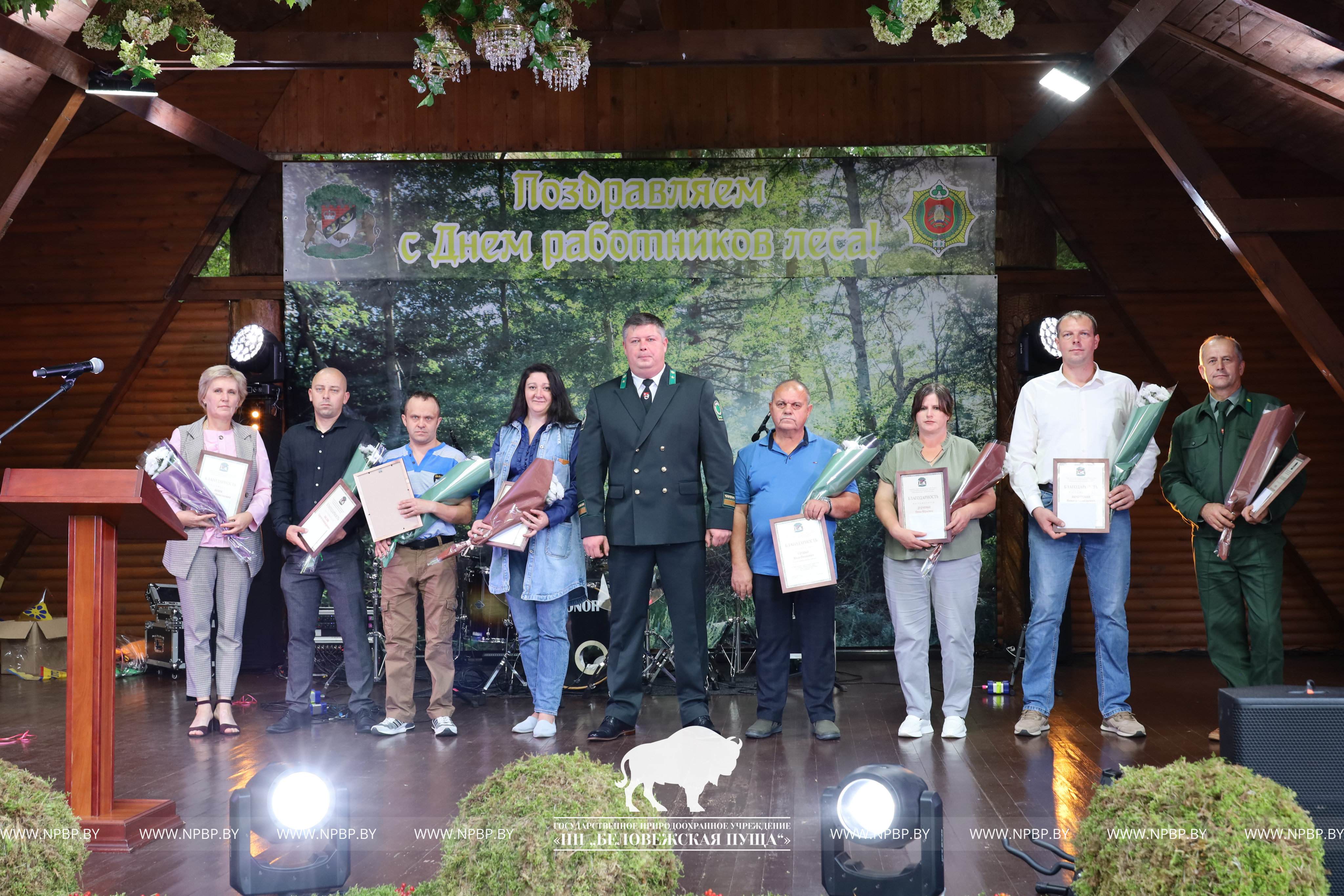 В этот день в торжественной обстановке им награждены работники парка, достигшие лучших результатов в своей трудовой деятельности. Поздравили коллектив пущи Сенчук В.Г., Председатель Каменецкого исполнительного комитета, Шемякова О.Е., Председатель Брестской областной организации Белорусского профсоюза работников леса и природопользования, председатель первичной профсоюзной организации Национального парка «Беловежского пуща» Волинский Я.Б.