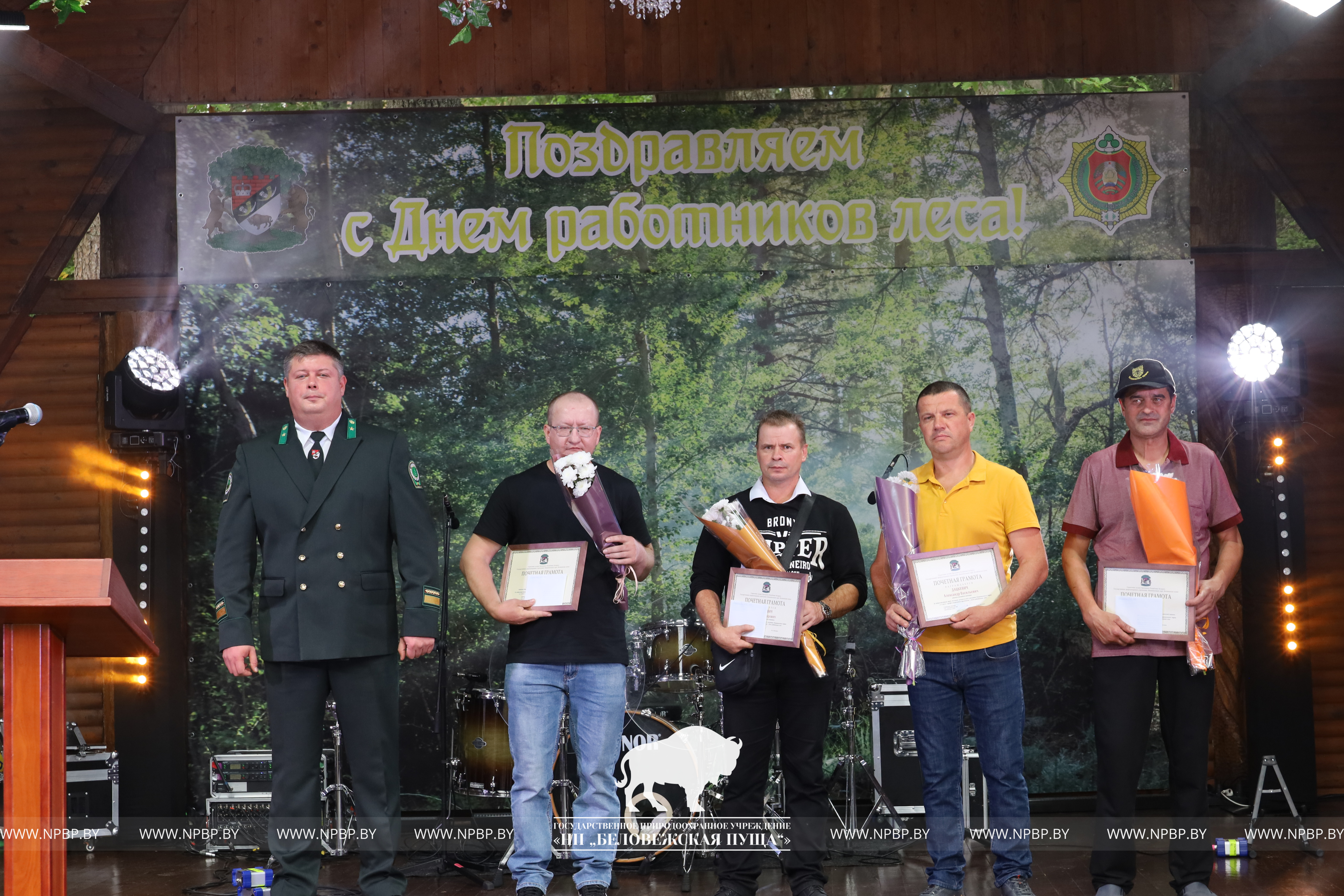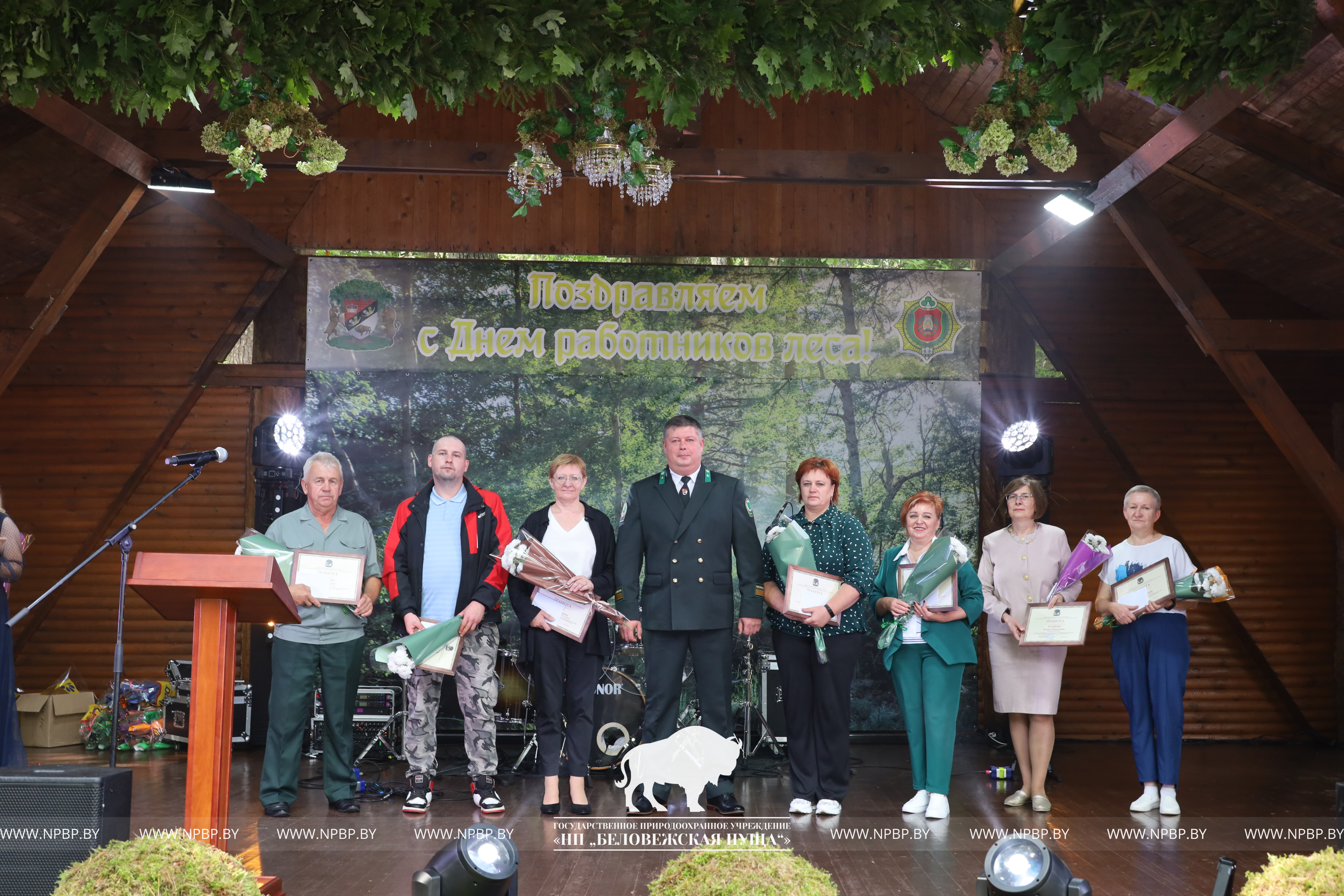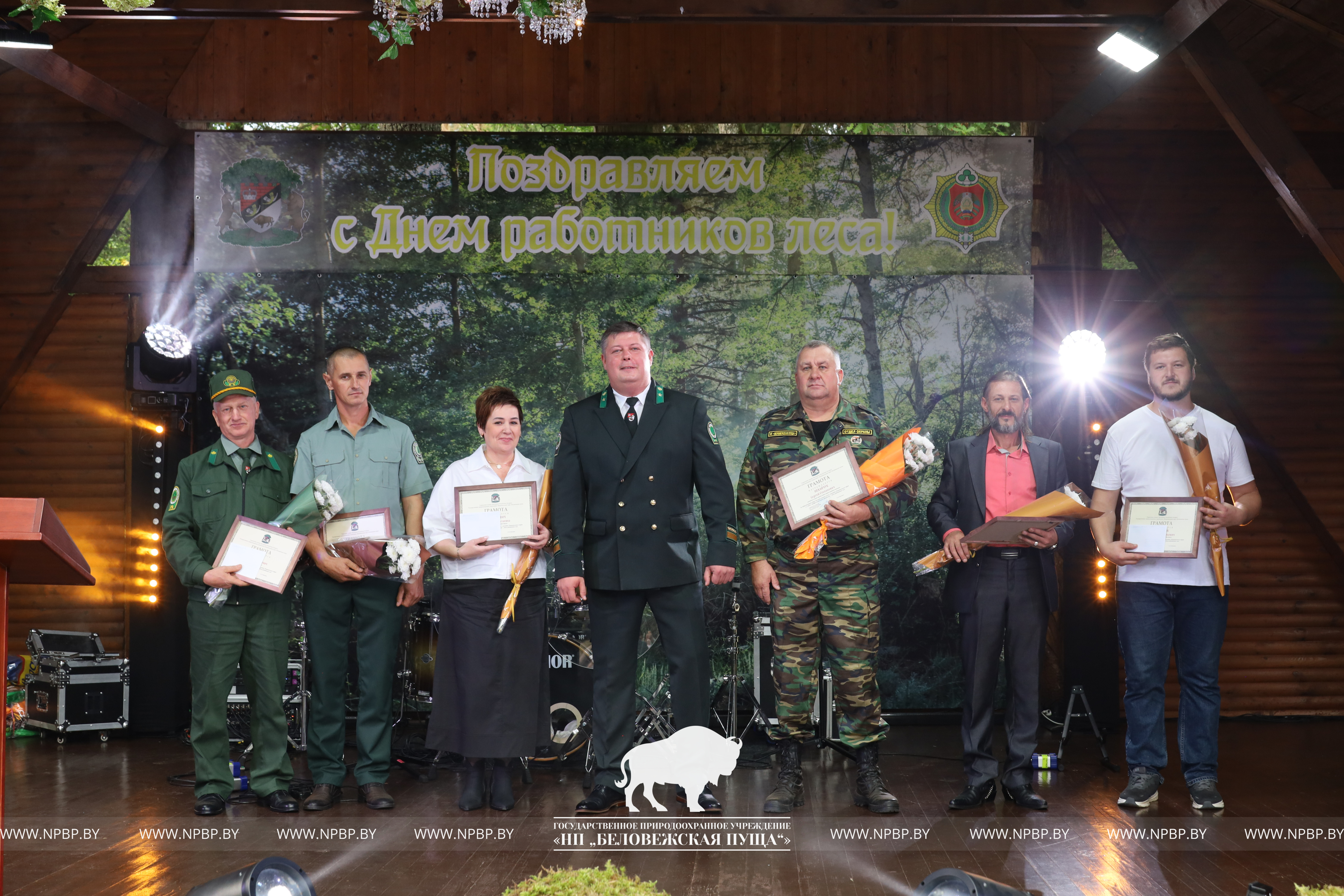 В этот день в торжественной обстановке им награждены работники парка, достигшие лучших результатов в своей трудовой деятельности. Поздравили коллектив пущи Сенчук В.Г., Председатель Каменецкого исполнительного комитета, Шемякова О.Е., Председатель Брестской областной организации Белорусского профсоюза работников леса и природопользования, председатель первичной профсоюзной организации Национального парка «Беловежского пуща» Волинский Я.Б.