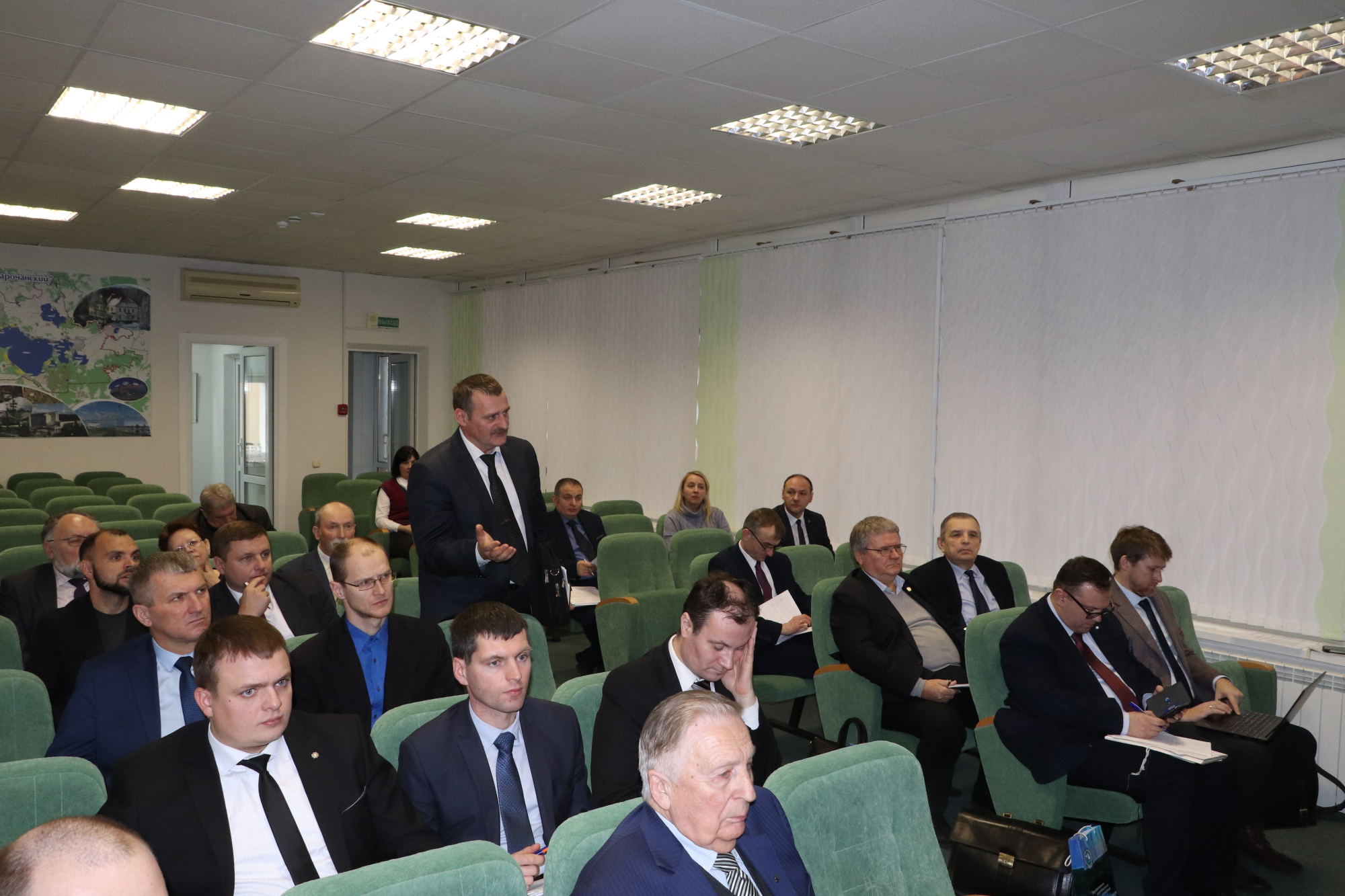 20 декабря 2023 года в административном центре Национального парка «Нарочанский» (к.п. Нарочь Мядельского района) состоялось очередное заседание Координационного совета по научной и научно-исследовательской деятельности государственных природоохранных учреждений Управления делами Президента Республики Беларусь под председательством Заместителя Управляющего делами Президента Республики Беларусь Николая Рогащука. Участие в заседании приняли генеральный директор ГПУ «Национальный парк «Беловежская пуща» Владислав Тетерёнок, заместитель генерального директора Александр Овсей и начальник научного отдела Дмитрий Бернацкий.